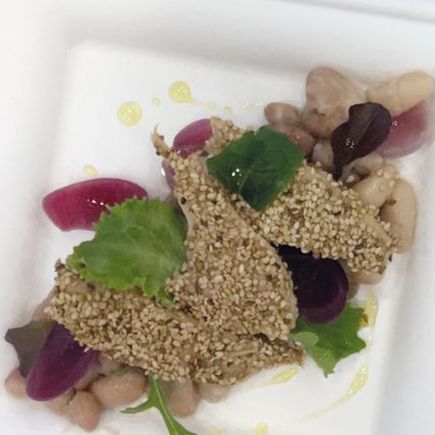 Sauté the baby squid in a very hot frying-pan with oil, garlic and rosemary, then season with salt, pepper and a pinch of ginger.